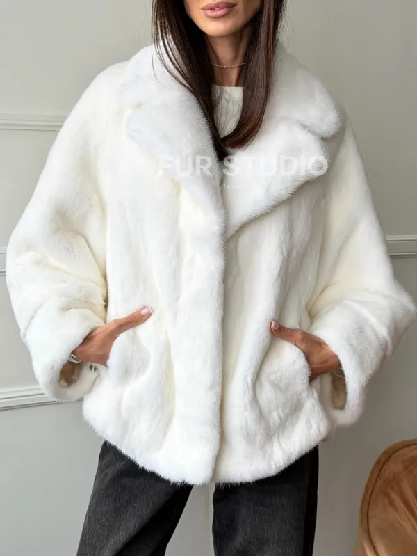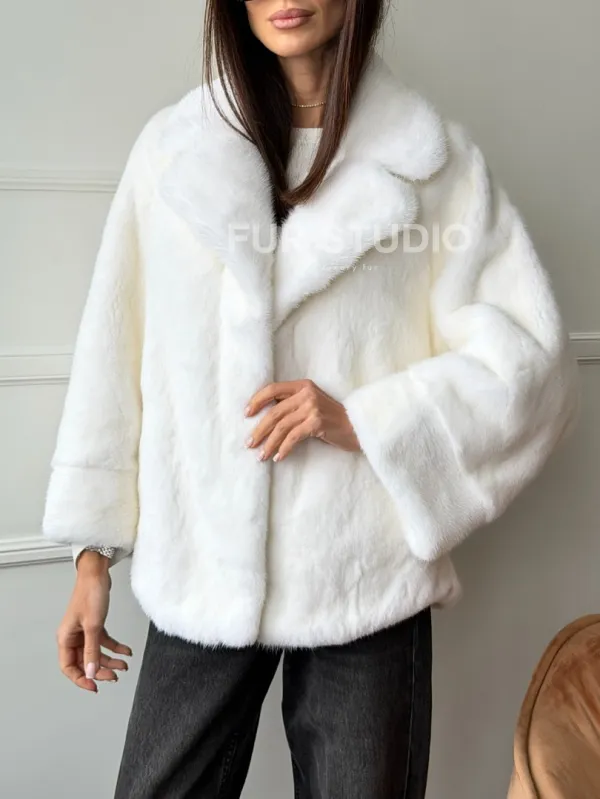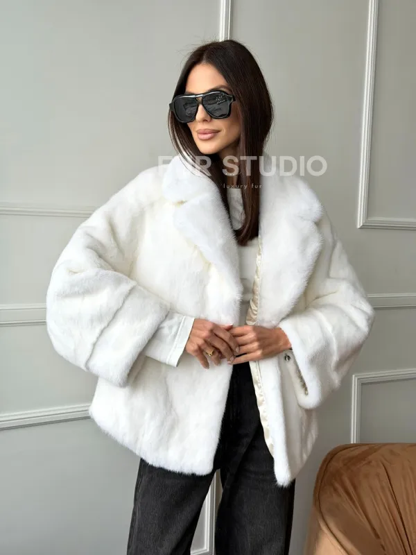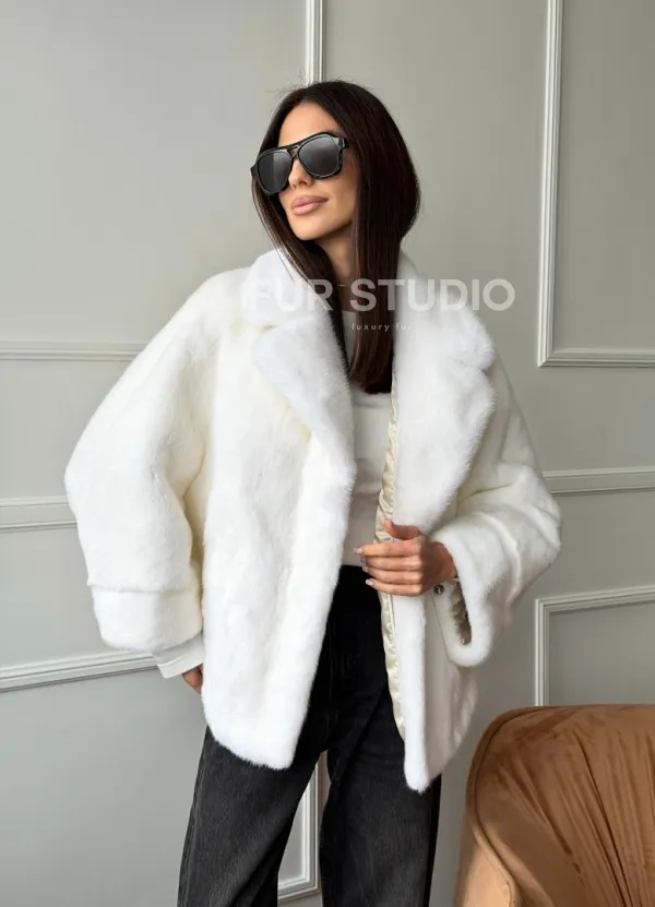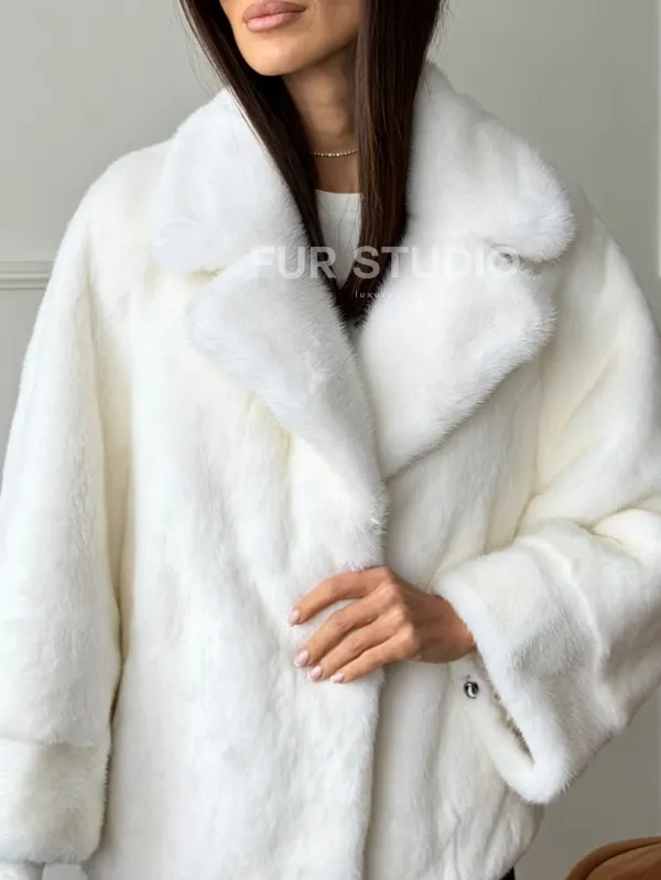Белая шуба из скандинавской норки 102746