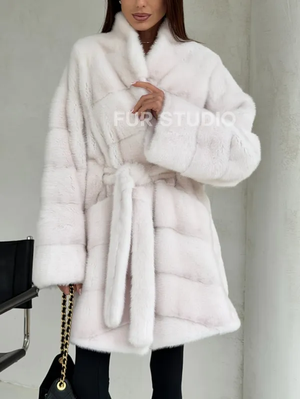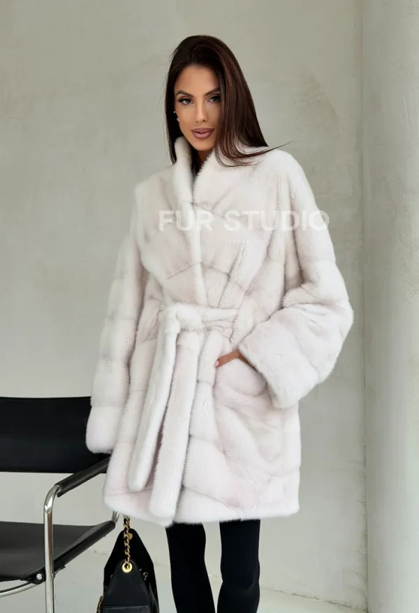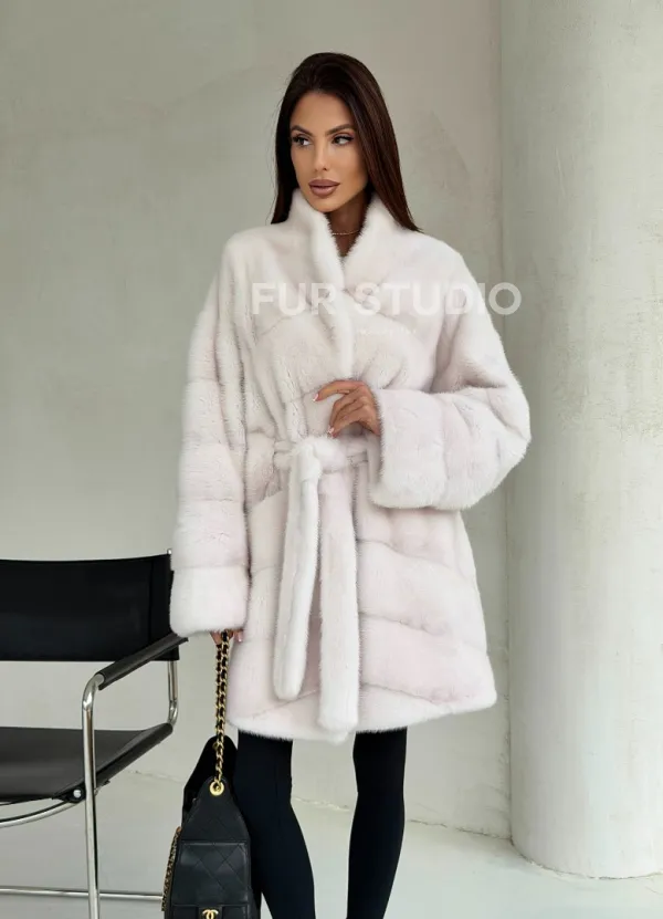 Белая шуба-кимоно, мех норка 102688