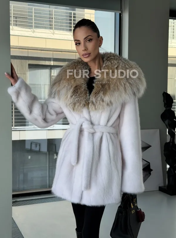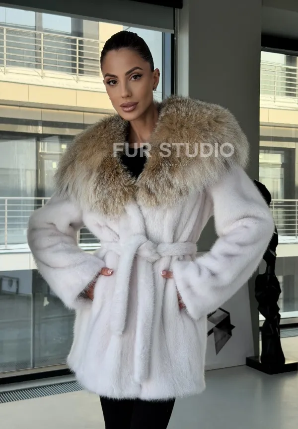 Мех данной шубы аукционная норка, цвет белый. Предлагается в размерах от 42 до 50. Длина модели 75-80 см, что выгодно подчеркивает фигуру девушек. Эта модель идеально подойдет для девушек и женщин, предпочитающих роскошные натуральные меха.