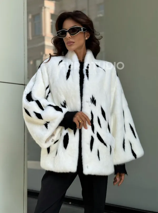 Белый норковый полушубок с рисунком доступна для покупки в нашем шоуруме Furs Studio в . У нас так же есть доставка во все города России. Добавьте немного роскоши в свой гардероб с этой шубой, которая будет служить вам многие годы.