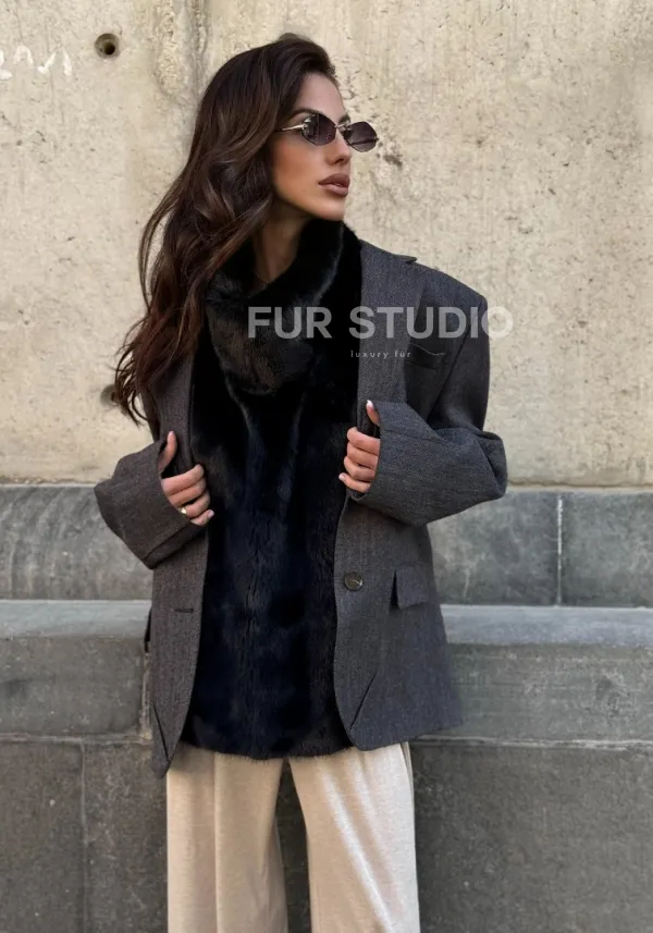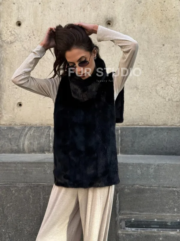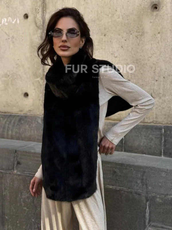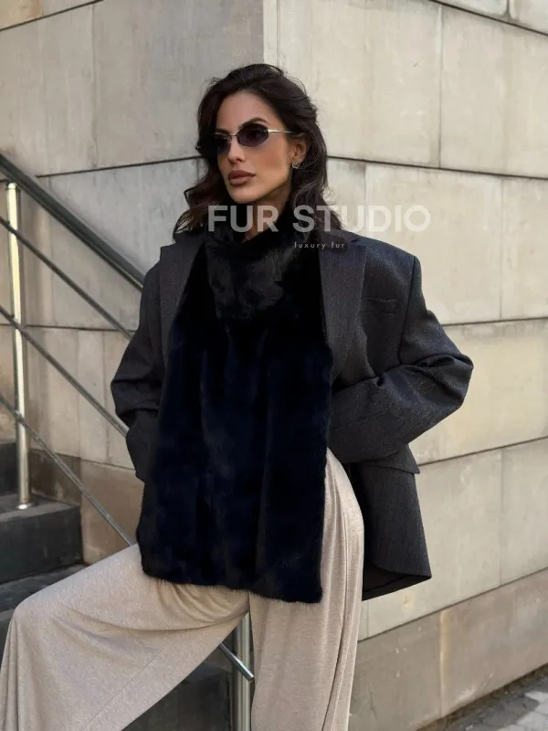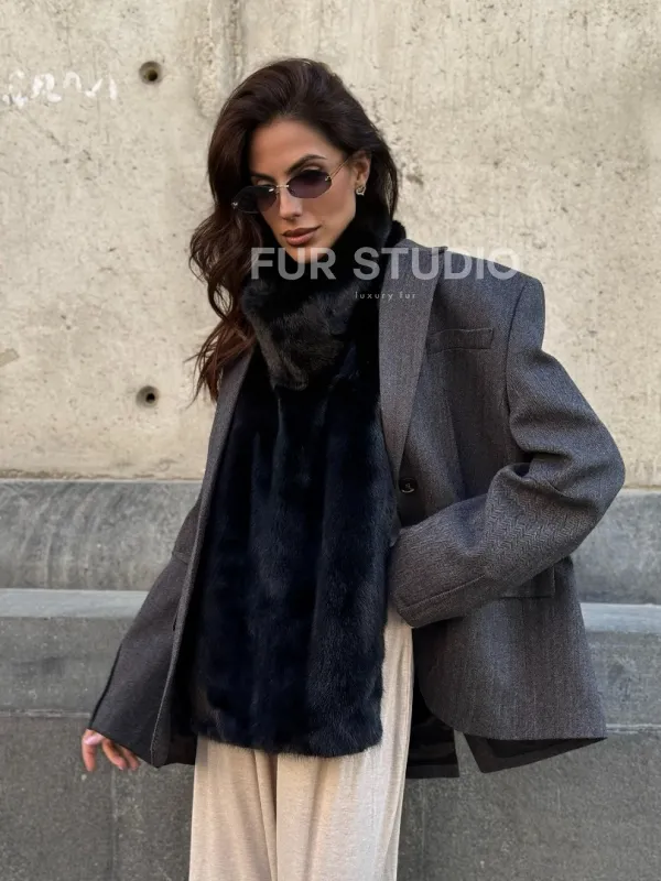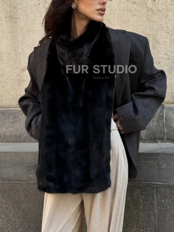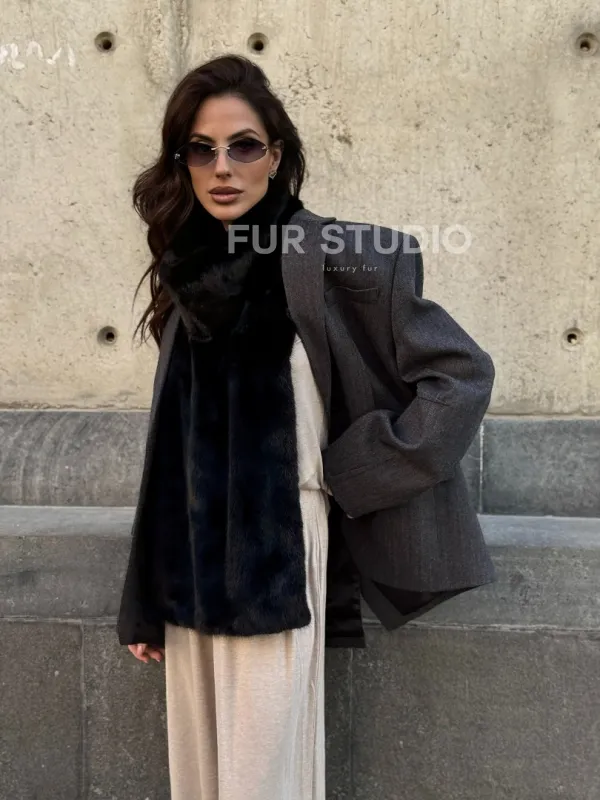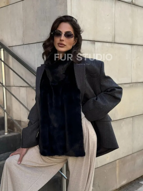 Черная норковая манишка 102213