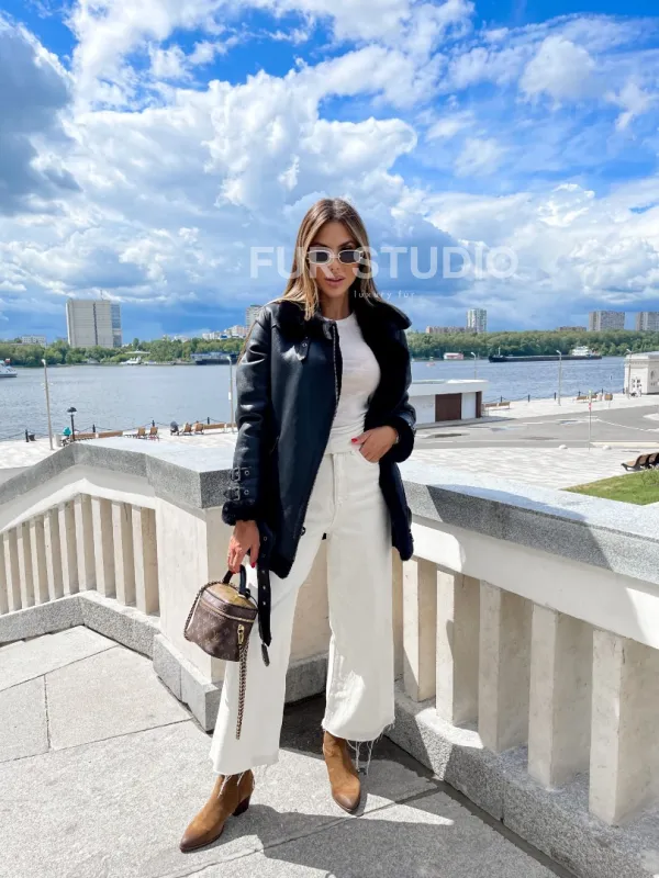 Черный авиатор из натуральной овчины – выбор девушек, которые любят дерзкий стиль. Дубленка сделает образ стильным и женственным. Ремешки и застежки в виде аксессуаров выглядят необычно и приковывают взгляды. Несмотря на «грубость» модели, вы будете выглядеть в ней очень сэкси. Оптимальная длина комфорта в носке.