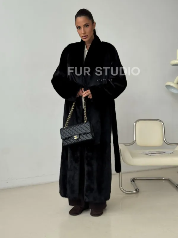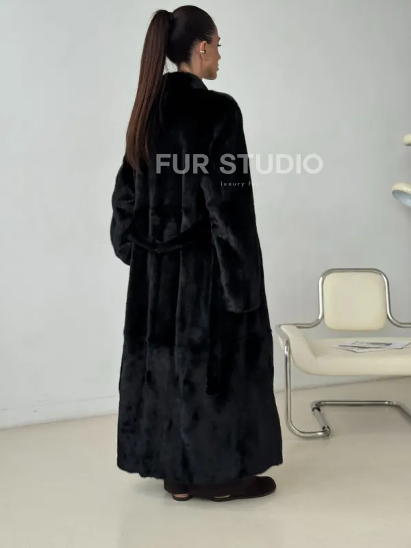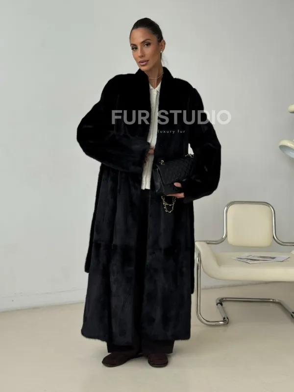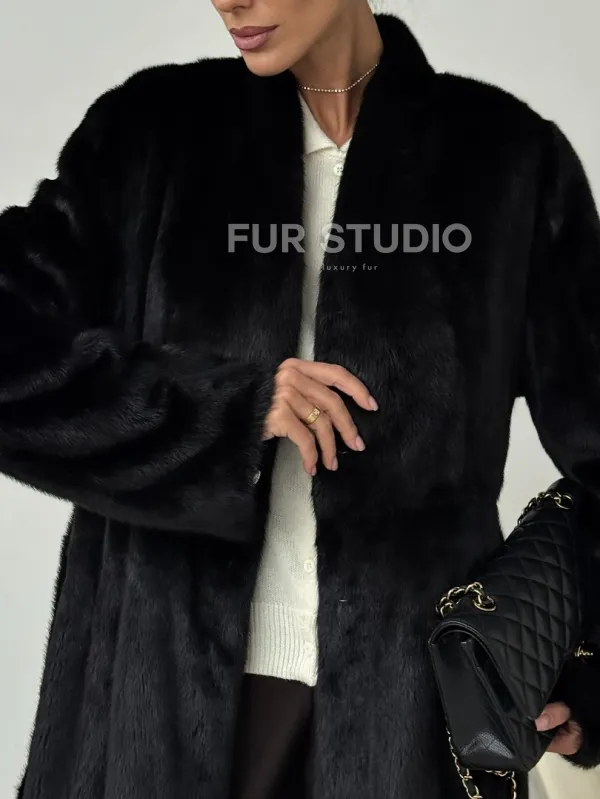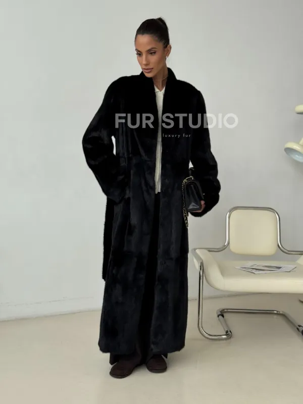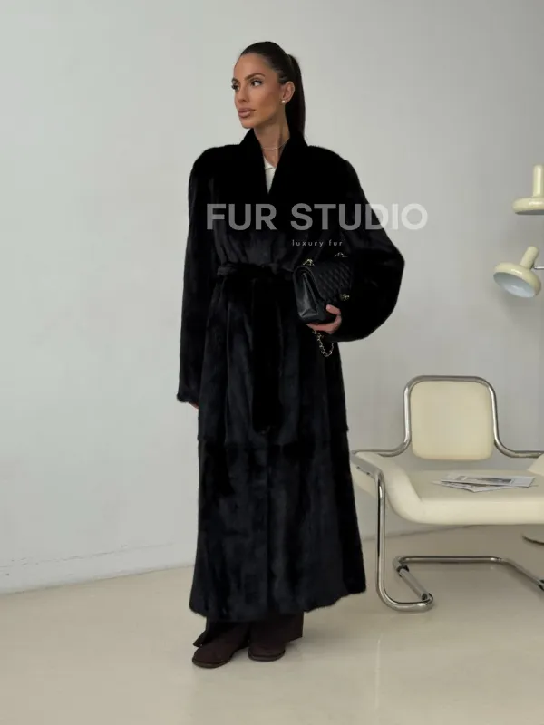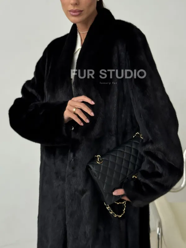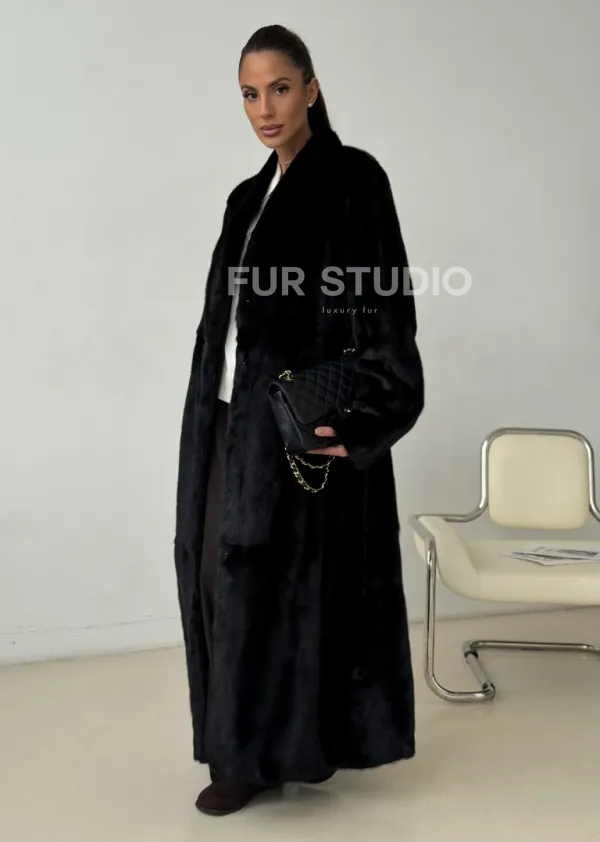Длинная черная норковая шуба 102321