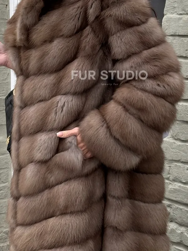 Длинная шуба из меха куницы доступна для покупки в нашем шоуруме Furs Studio в . У нас так же есть доставка во все города России. Добавьте немного роскоши в свой гардероб с этой шубой, которая будет служить вам многие годы.