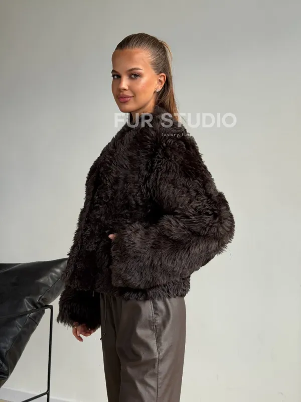 Дубленка кроп-топ из овчины калган 102600