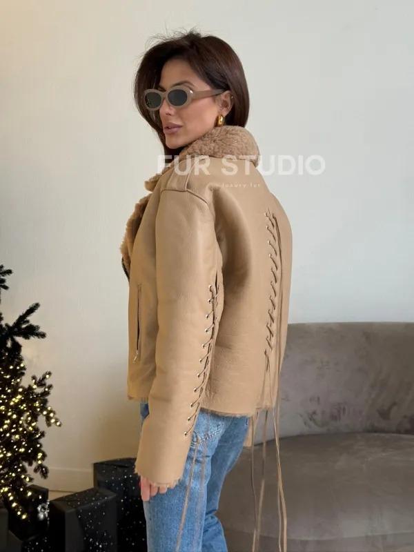 Дубленка - куртка со шнуровкой на спине доступна для покупки в нашем шоуруме Furs Studio в , а также предлагается удобная доставка во все города России. Обогатите свой гардероб этой дубленкой, которая прослужит вам многие годы, добавив немного роскоши в ваш повседневный образ.
