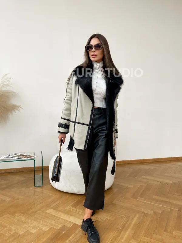 Оригинальный пояс, застегивающийся на бедрах, делает модель необычной. При этом ходить в дубленке очень удобно. Модель прекрасно подойдет под любой гардероб: от базового до вечернего туалета. Добавьте к образу статусную сумочку и идеальный look готов. Купить дубленку на мехе тосканы в цвете Grey могут женщины, которые любят выделяться из толпы и не быть, как все.