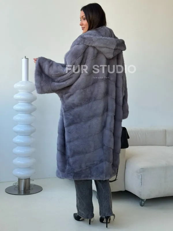 Голубая норковая шуба с капюшоном oversize доступна для покупки в нашем шоуруме Furs Studio в . У нас так же есть доставка во все города России. Добавьте немного роскоши в свой гардероб с этой шубой, которая будет служить вам многие годы.