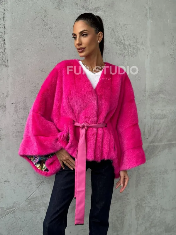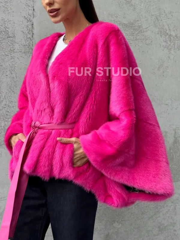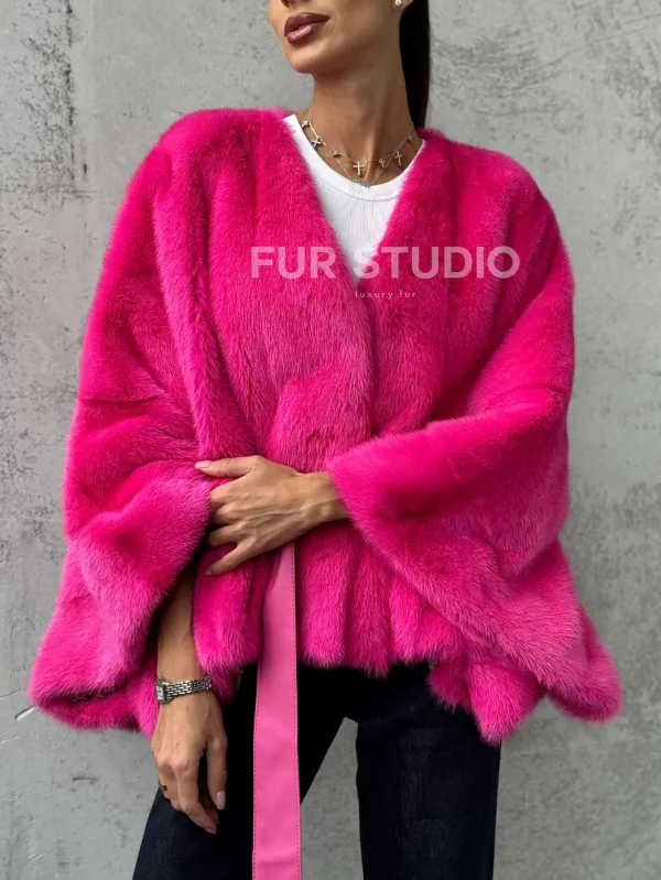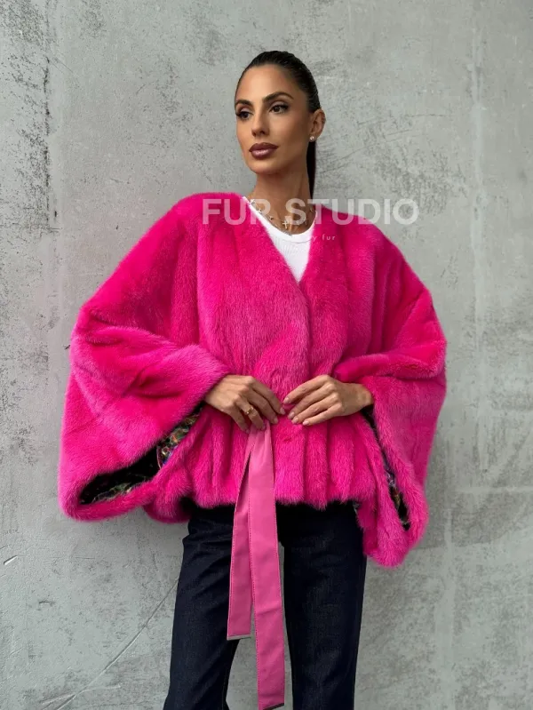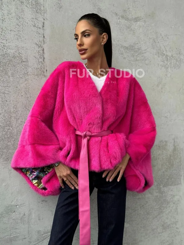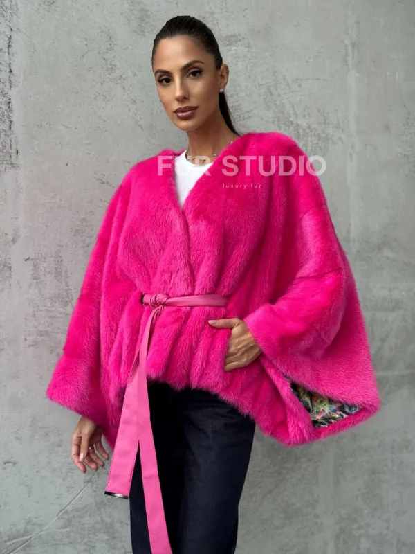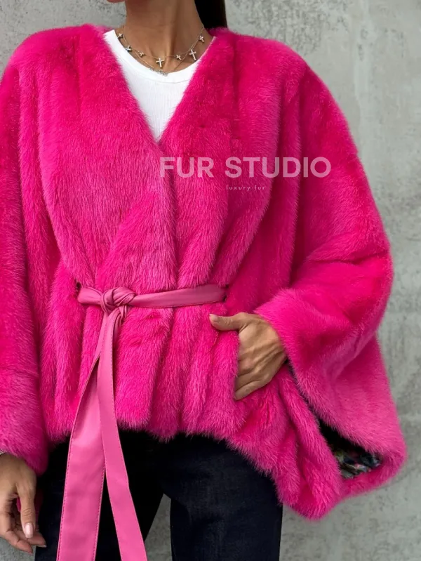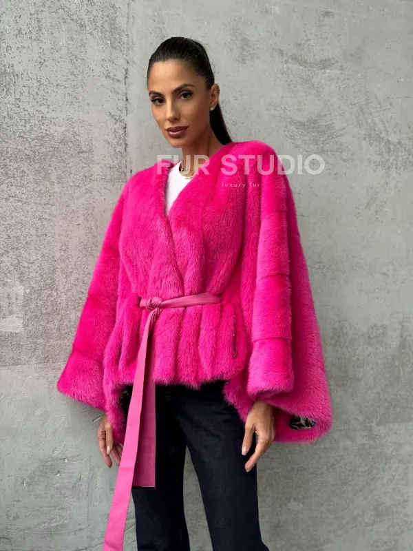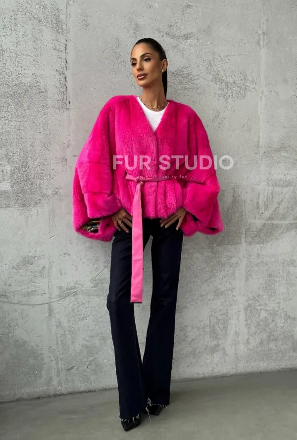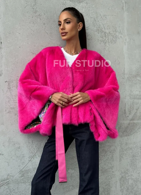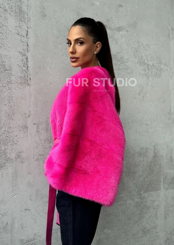 Мех данной шубы аукционная норка, цвет розовый. Предлагается в размерах от 40 до 58 (oversize). Длина модели 50-55 см, что выгодно подчеркивает фигуру девушек. Эта модель идеально подойдет для девушек и женщин, предпочитающих роскошные натуральные меха.