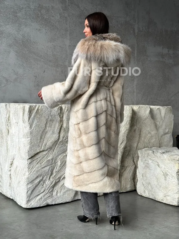 Норка шуба паркет с капюшоном рысь 102507