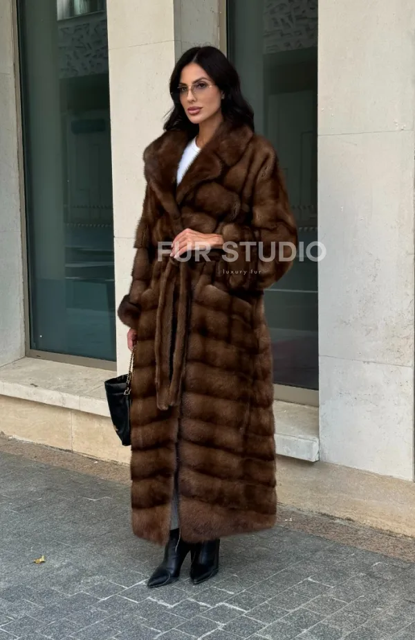 Норковая шуба в цвете соболь с английским воротником 100121