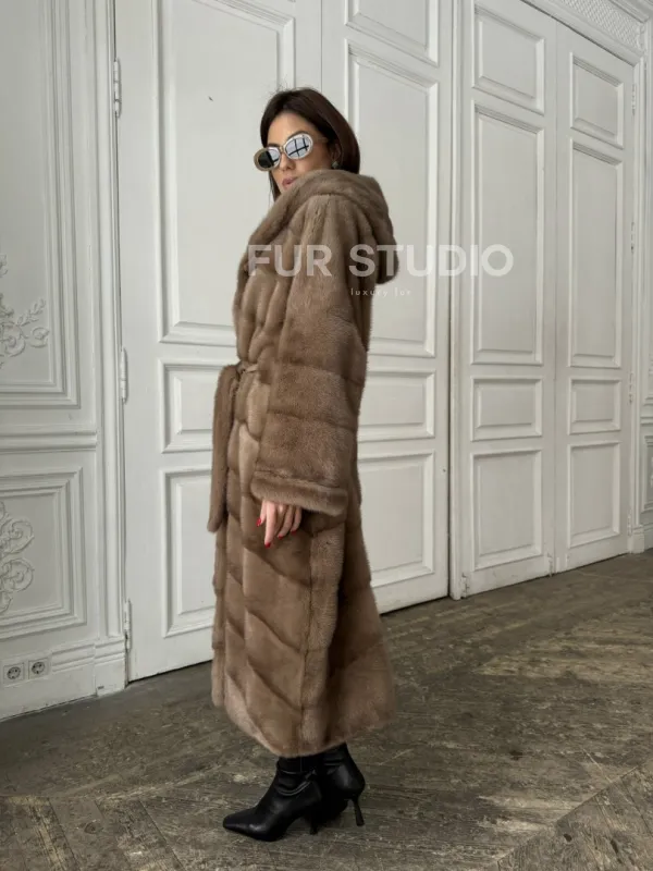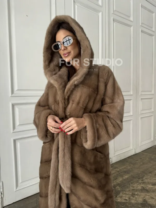 Норковое кимоно с капюшоном в цвете пастель доступна для покупки в нашем шоуруме Furs Studio в . У нас так же есть доставка во все города России. Добавьте немного роскоши в свой гардероб с этой шубой, которая будет служить вам многие годы.