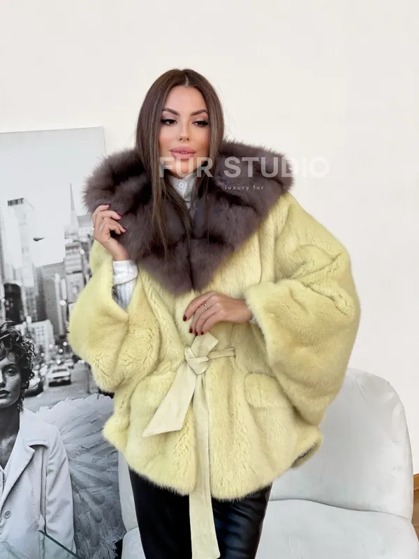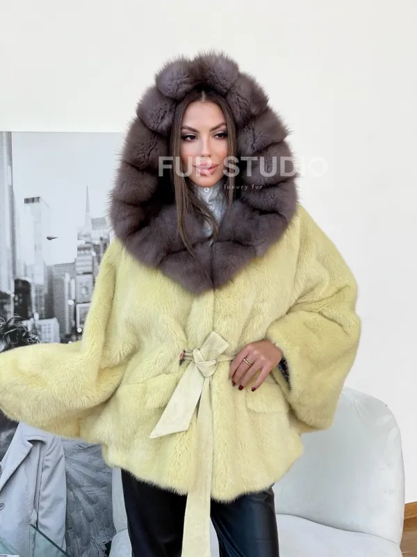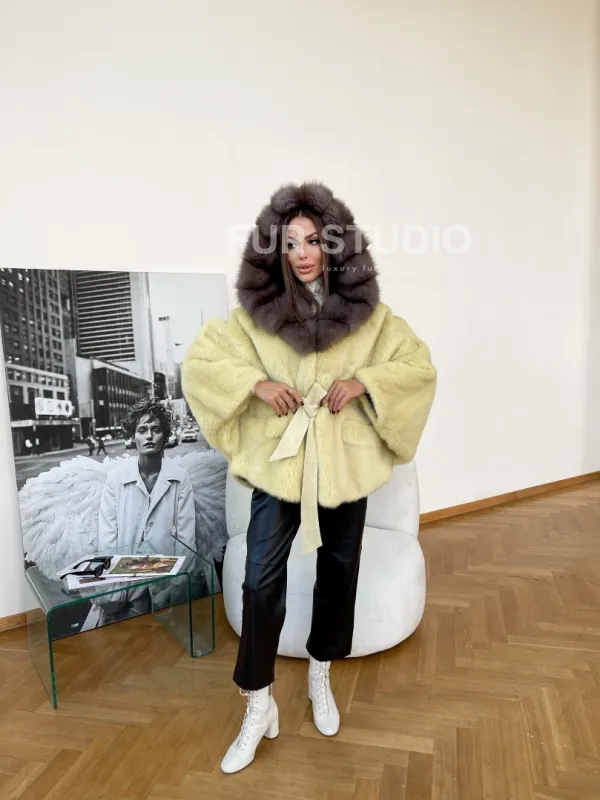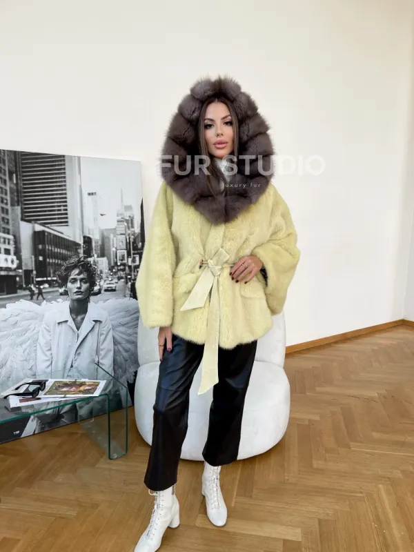 Норковое пончо с капюшоном из меха куницы 100170
