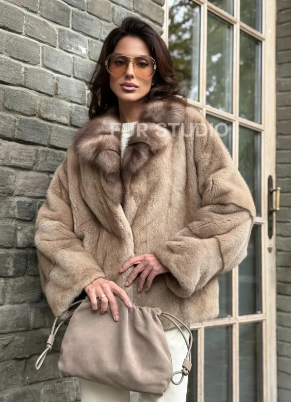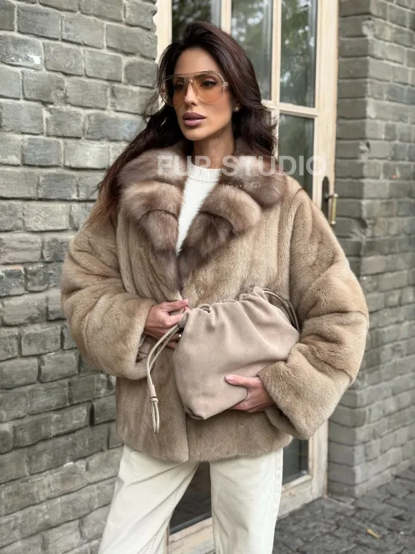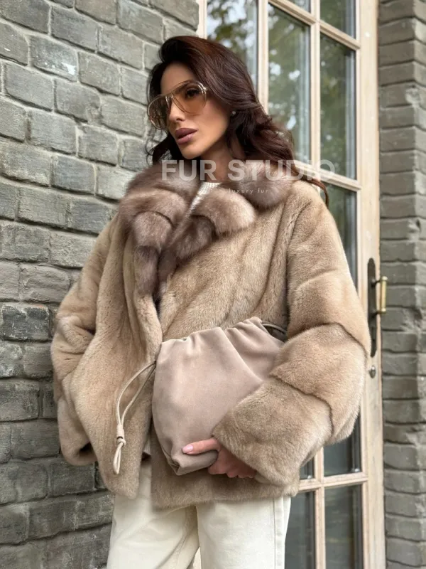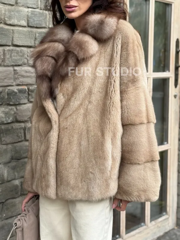 Норковый полушубок - автоледи с куницей 102361