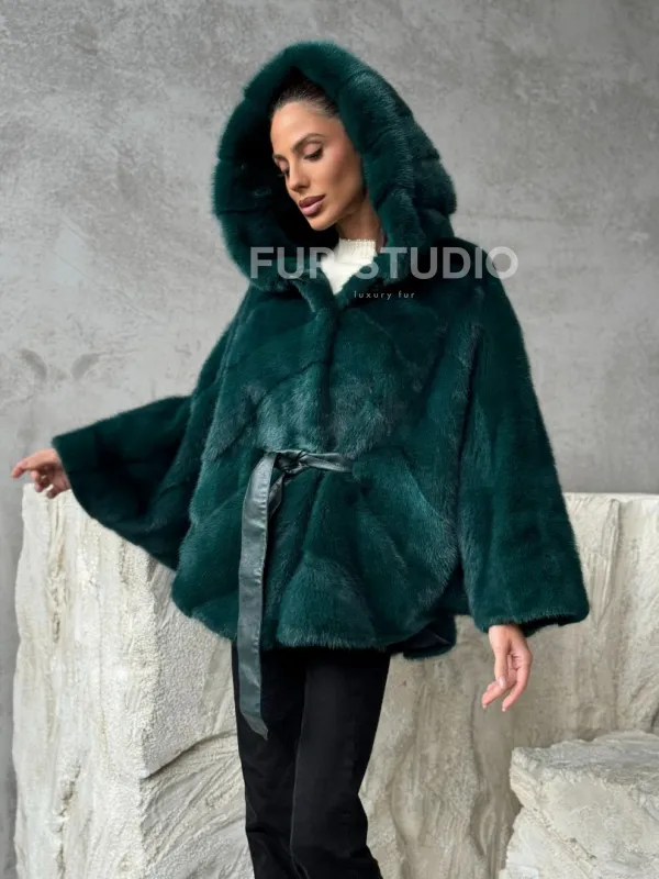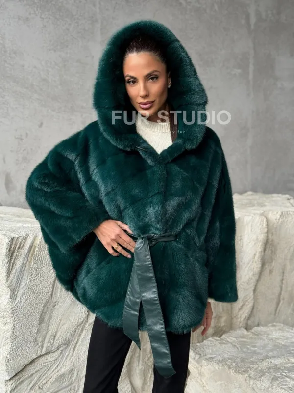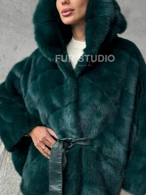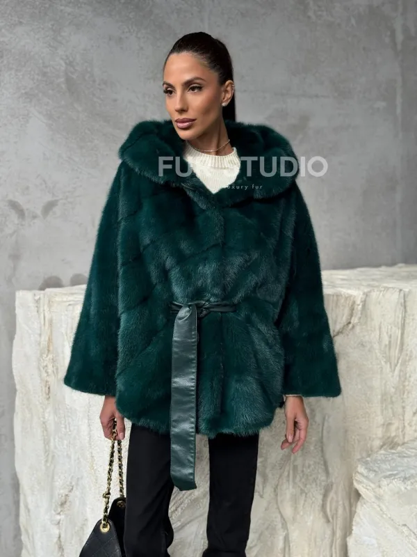 Норковый полушубок с капюшоном 102379