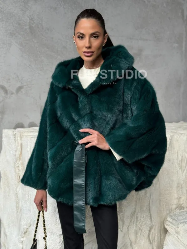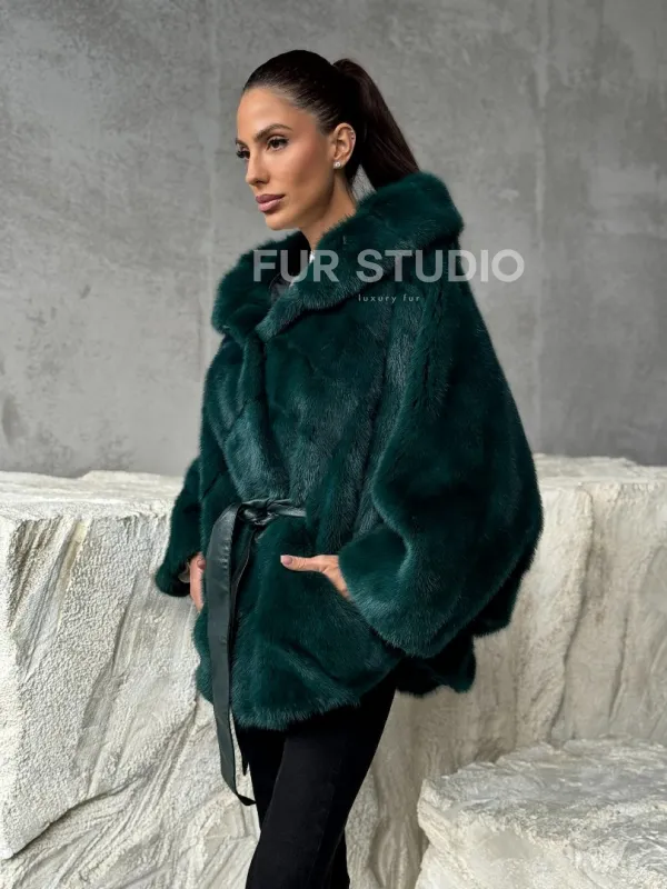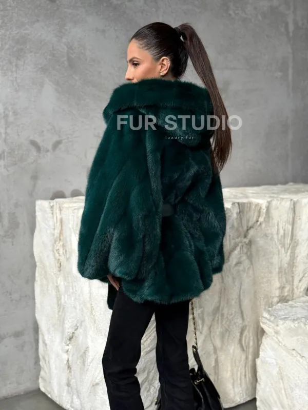 Мех данной шубы аукционная норка , цвет зеленый. Предлагается в размерах от 40 до 50 (oversize). Длина модели 70-75 см , что выгодно подчеркивает фигуру девушек. Эта модель идеально подойдет для девушек и женщин, предпочитающих роскошные натуральные меха.