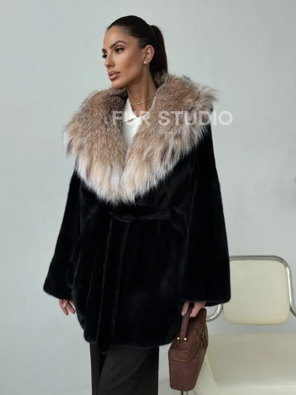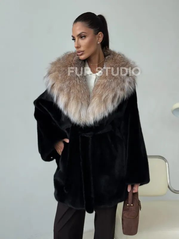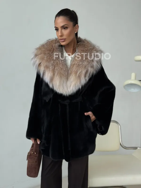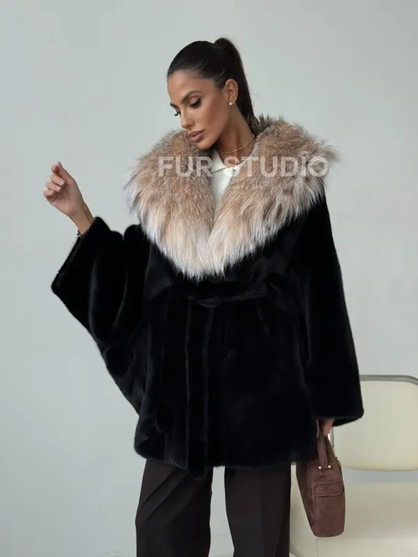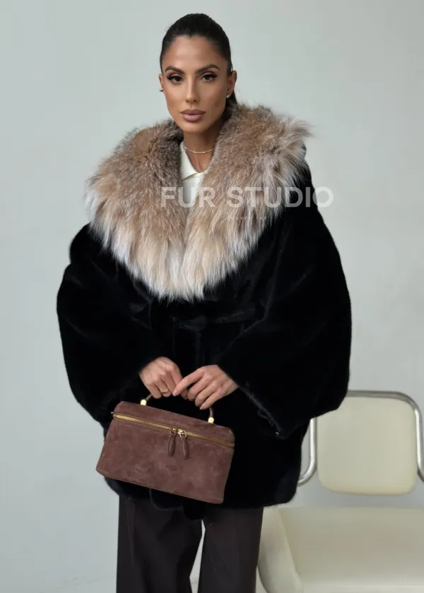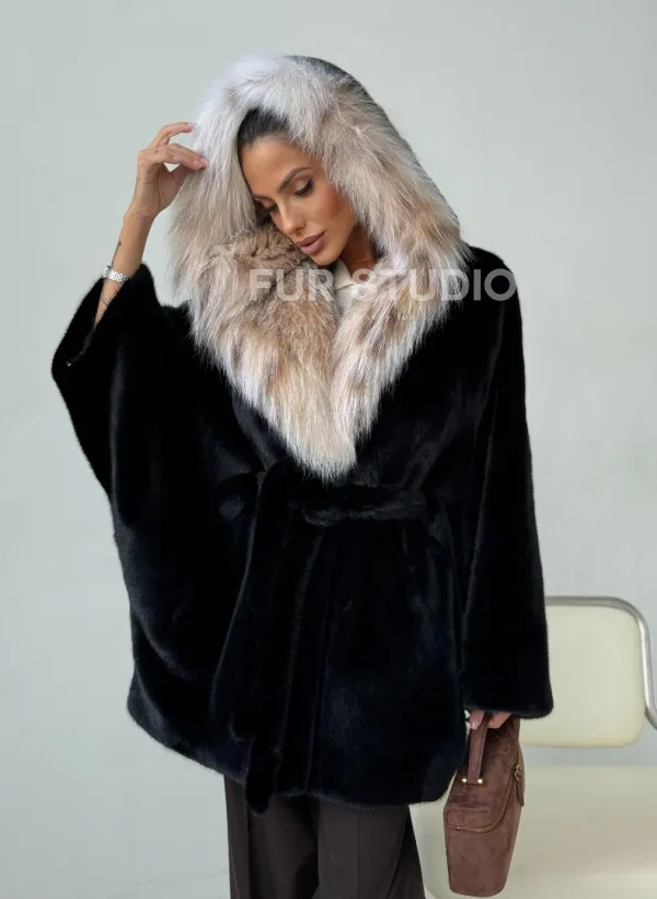Норковый полушубок с капюшоном рысь 102400