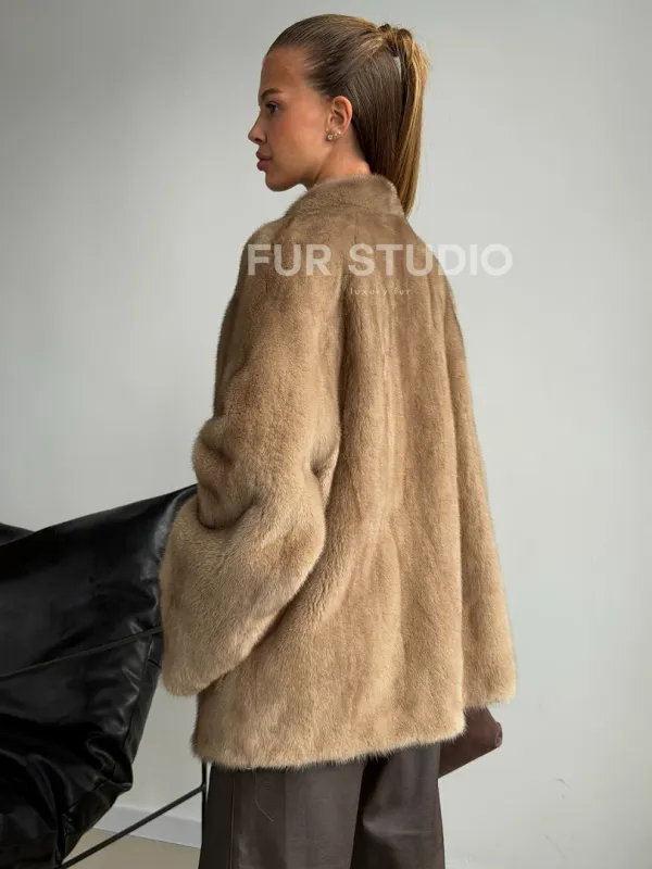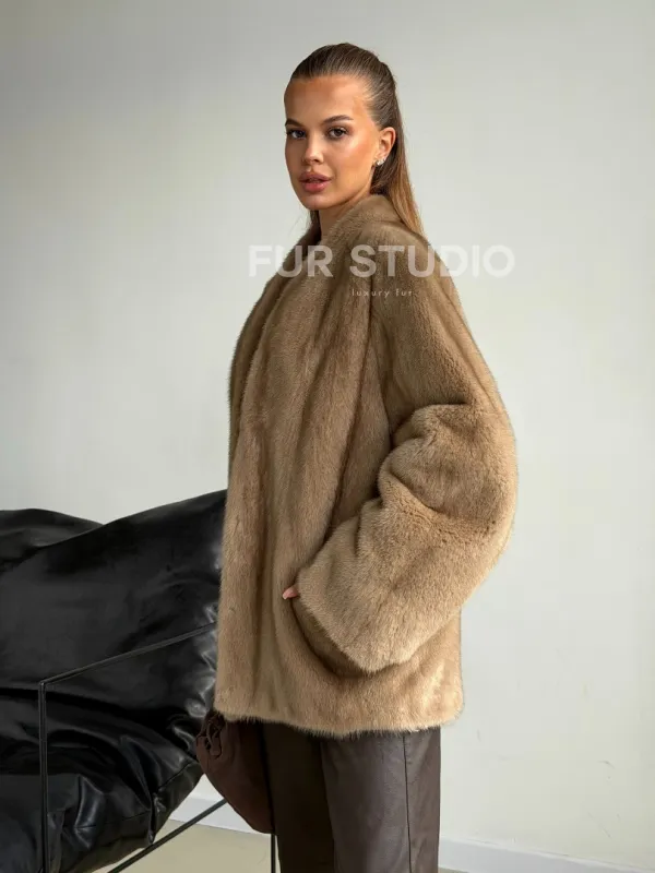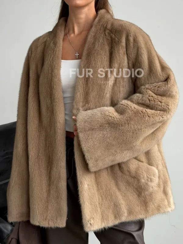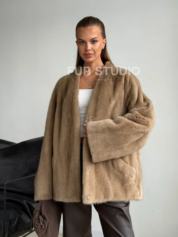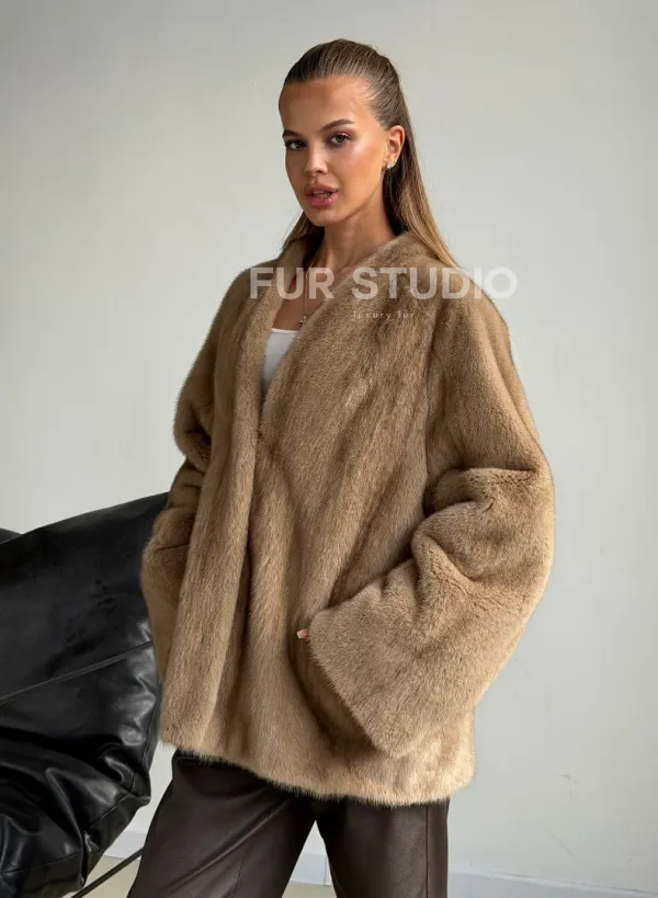 Норковый полушубок V-образный воротник 102590