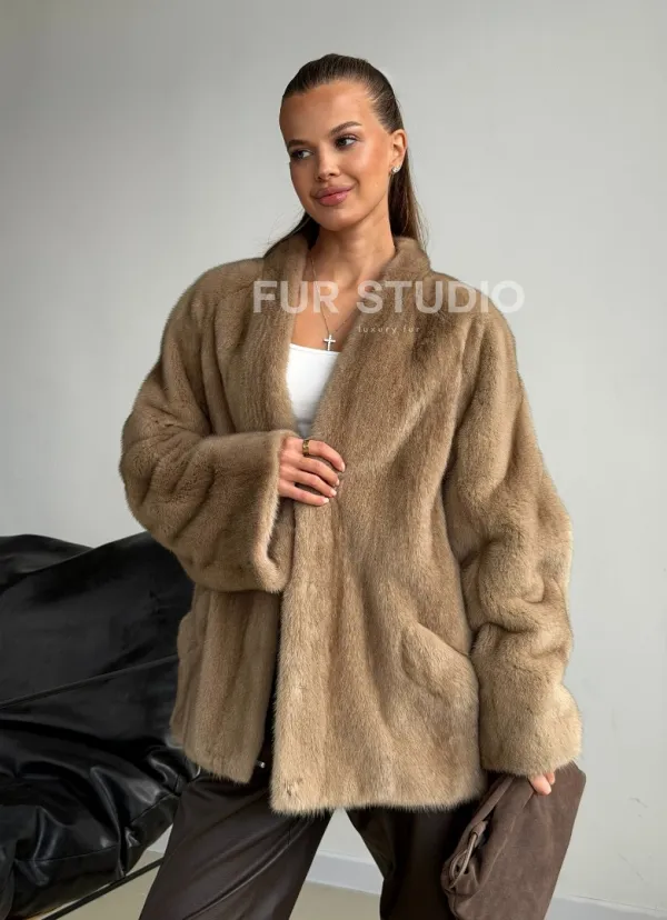 Мех данной шубы аукционная норка , цвет бежевый. Предлагается в размерах от 42 до 50. Длина модели 70-75 см, что выгодно подчеркивает фигуру девушек. Эта модель идеально подойдет для девушек и женщин, предпочитающих роскошные натуральные меха.