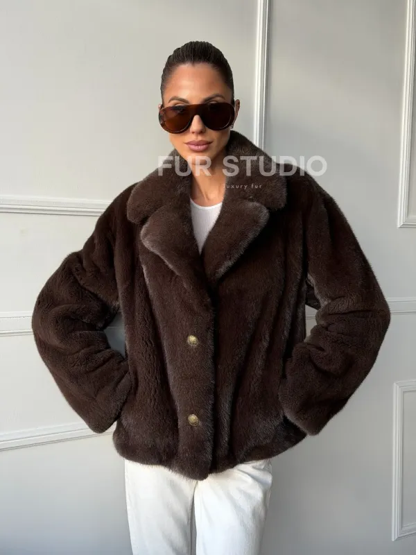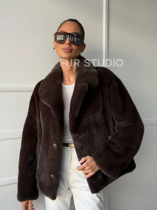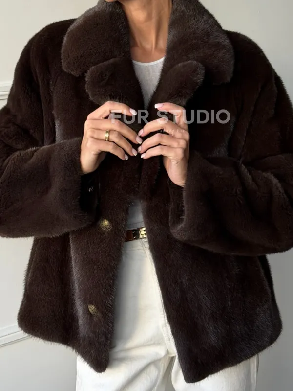Мех данной шубы аукционная норка, цвет коричневый. Предлагается в размерах от 42 до 48. Длина модели 55-60 см, что выгодно подчеркивает фигуру девушек. Эта модель идеально подойдет для девушек и женщин, предпочитающих роскошные натуральные меха.