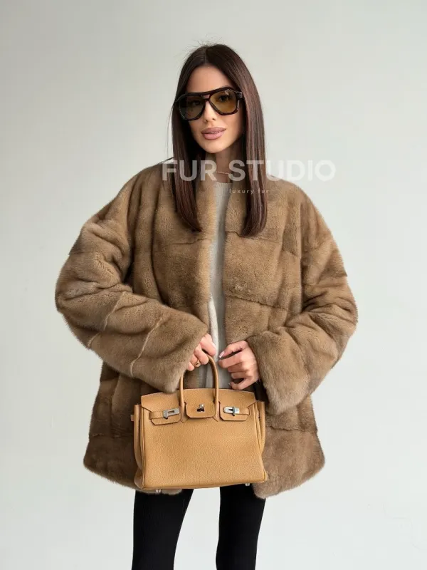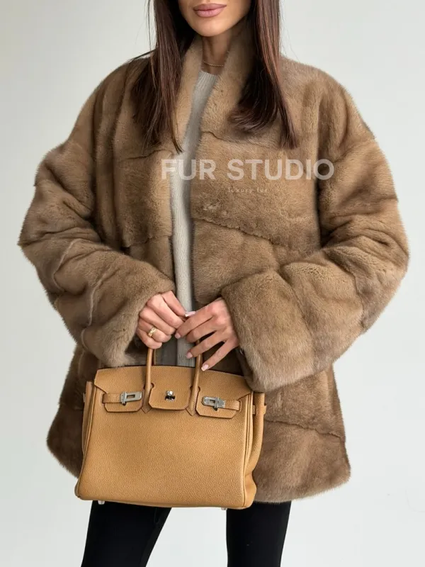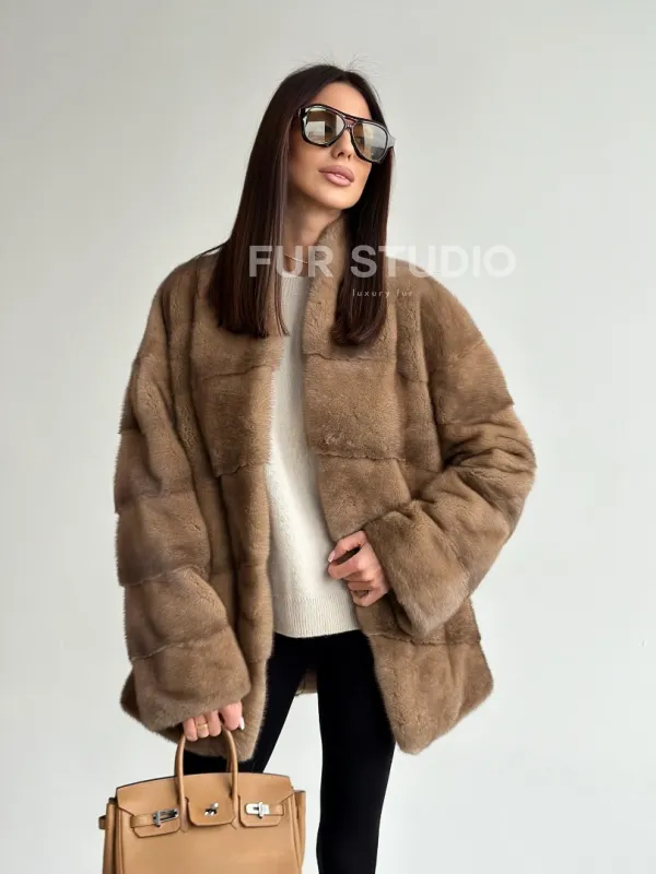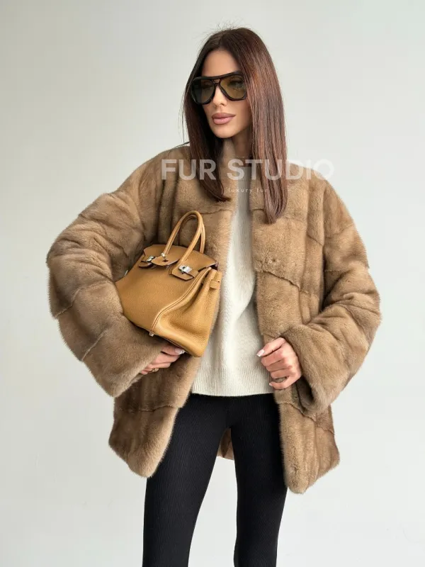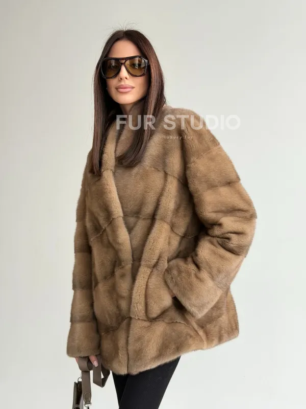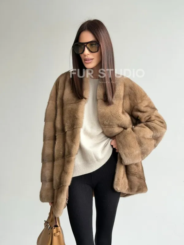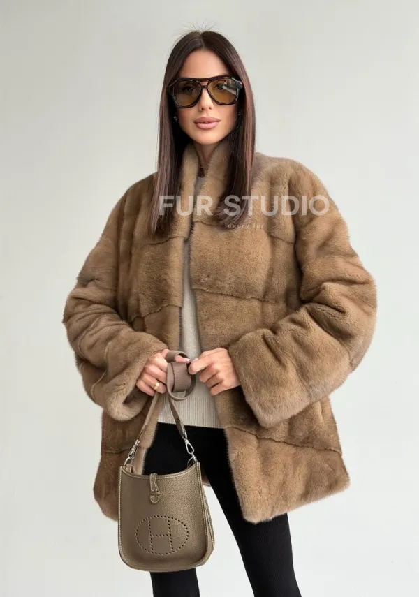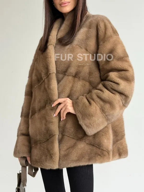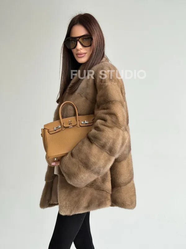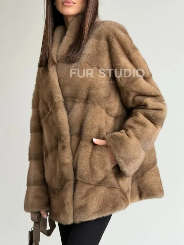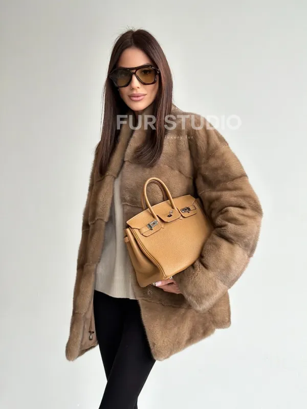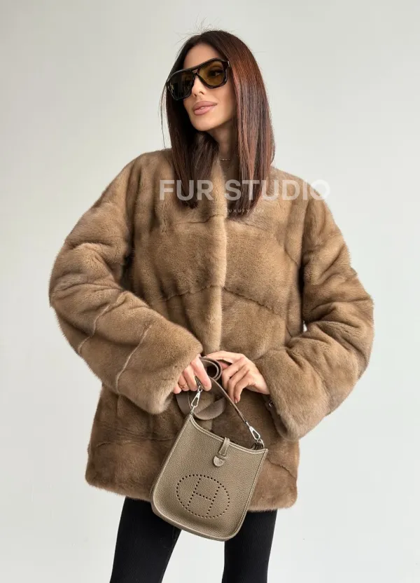 Полушубок пастель мех норка 102750