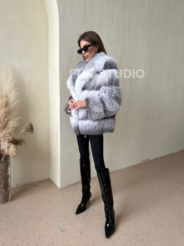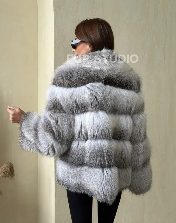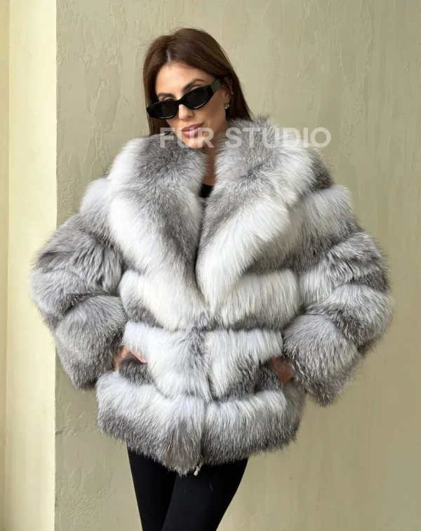 Шуба из меха арктической лисы - отличный выбор женщин, которые любят выглядеть стильно в зимнее время года. Мех смотрится шикарно и богато. Необычная расцветка подчеркнет цвет волос и глаз владелицы. В шубе будет комфортно в холодную зиму. Широкие манжеты делают акцент на тонкости кистей.