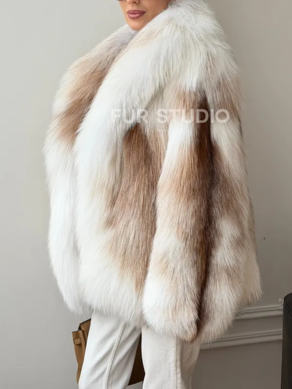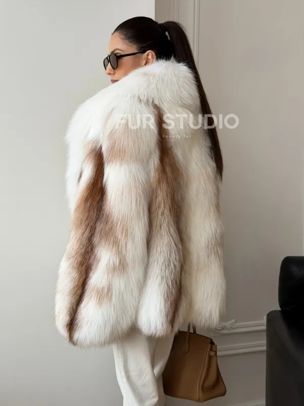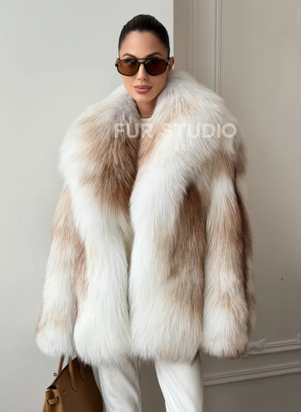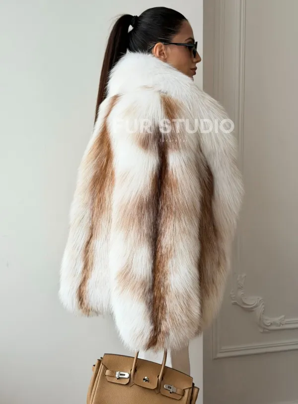 Мех данной шубы лиса, цвет белый. Предлагается в размерах от 42 до 48. Длина модели 70-75 см, что выгодно подчеркивает фигуру девушек. Эта модель идеально подойдет для девушек и женщин, предпочитающих роскошные натуральные меха.