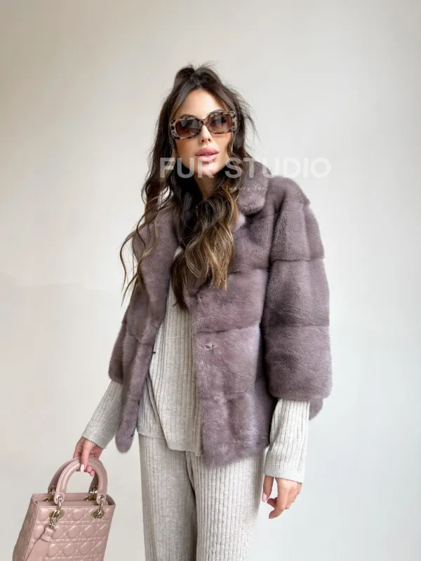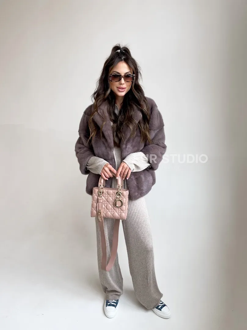 Мех данной шубы аукционная норка, цвет розовый. Предлагается в размерах от 40 до 48. Длина модели 55-60 см, что выгодно подчеркивает фигуру девушек. Эта модель идеально подойдет для девушек и женщин, предпочитающих роскошные натуральные меха.