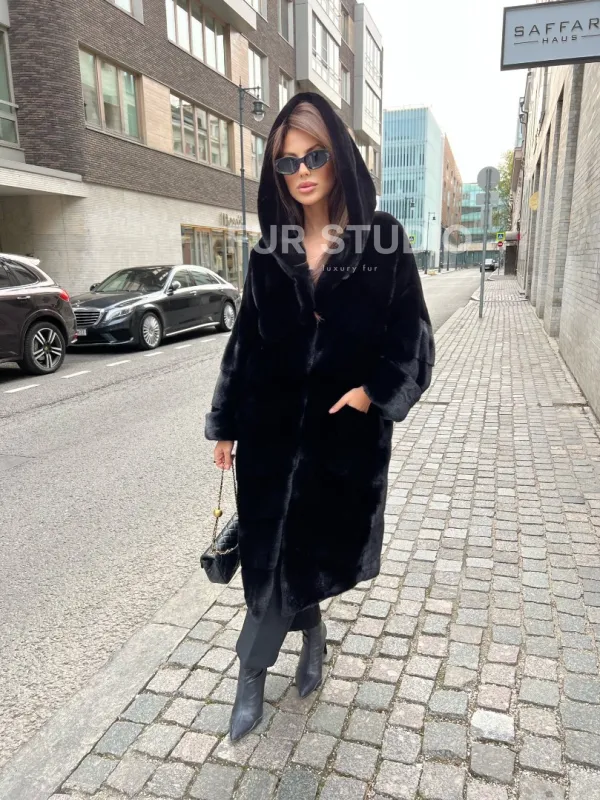 Шуба из меха норки SAGA FURS с капюшоном 100163