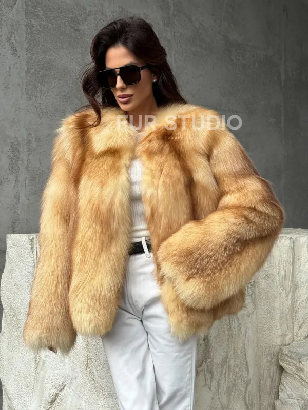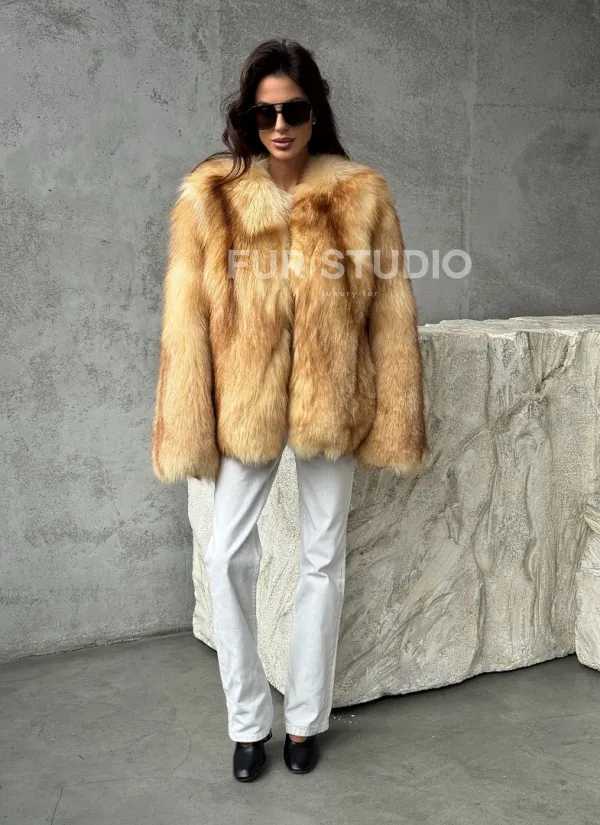 Мех данной шубы лиса, цвет рыжий. Предлагается в размерах от 42 до 48. Длина модели 65-70 см, что выгодно подчеркивает фигуру девушек. Эта модель идеально подойдет для девушек и женщин, предпочитающих роскошные натуральные меха.