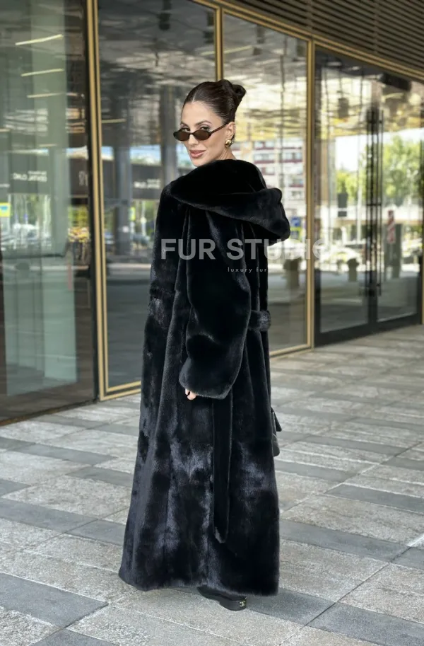 Удлиненная шуба из норки BLACKGLAMA с капюшоном доступна для покупки в нашем шоуруме Furs Studio в . У нас так же есть доставка во все города России. Добавьте немного роскоши в свой гардероб с этой шубой, которая будет служить вам многие годы.