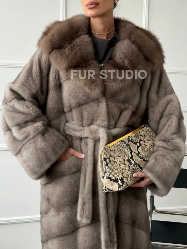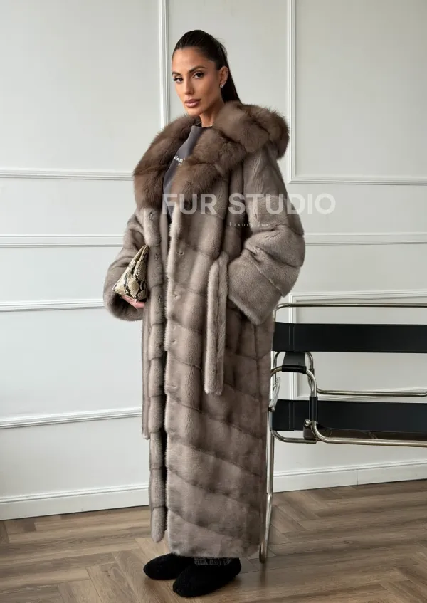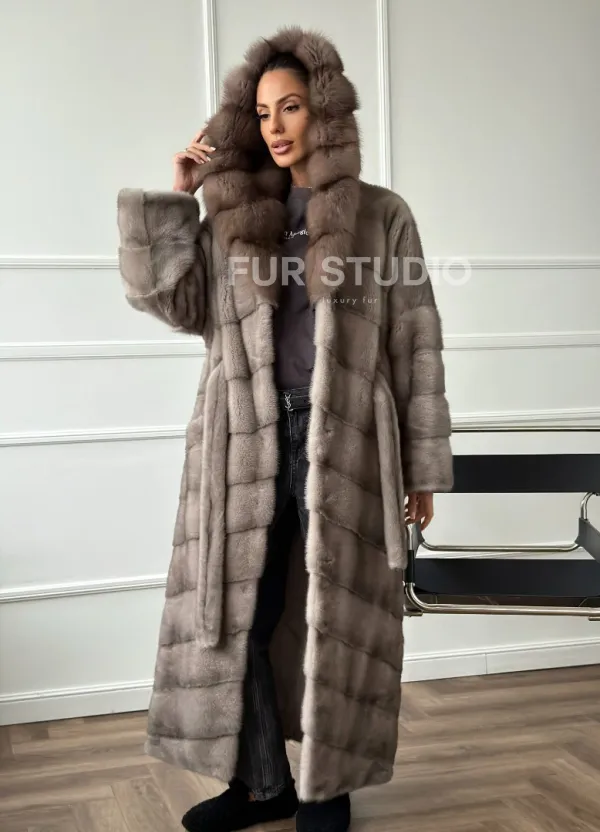 Шуба-кимоно норка в пол с капюшоном куница доступна для покупки в нашем шоуруме Furs Studio в . У нас так же есть доставка во все города России. Добавьте немного роскоши в свой гардероб с этой шубой, которая будет служить вам многие годы.