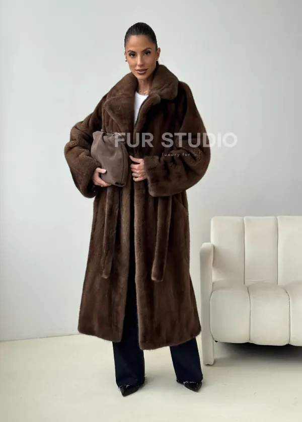 Мех данной шубы аукционная норка , цвет коричневый. Предлагается в размерах от 42 до 54. Длина модели 115-120 см, что выгодно подчеркивает фигуру девушек. Эта модель идеально подойдет для девушек и женщин, предпочитающих роскошные натуральные меха.