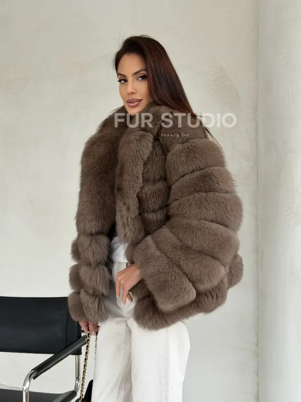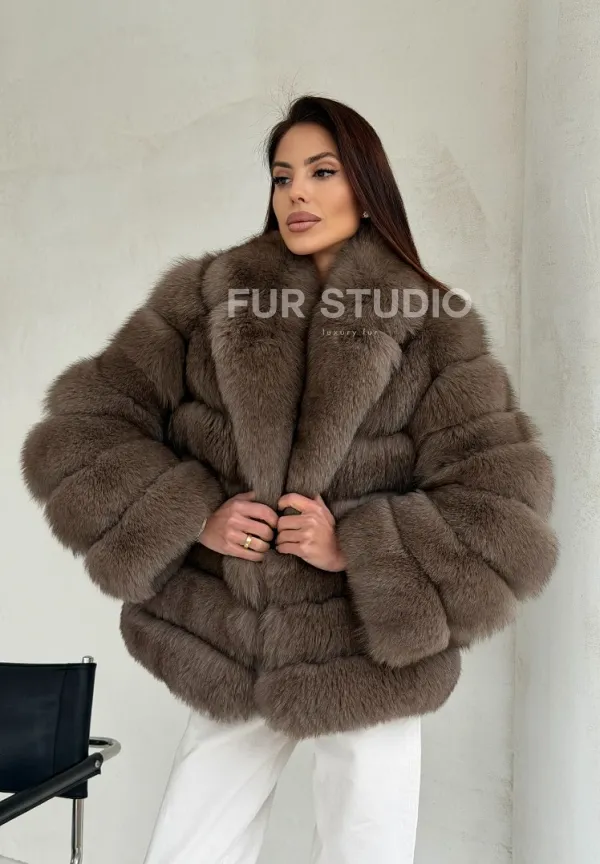 Мех данной шубы финский песец, цвет коричневый. Предлагается в размерах от 42 до 48. Длина модели 60-65 см, что выгодно подчеркивает фигуру девушек. Эта модель идеально подойдет для девушек и женщин, предпочитающих роскошные натуральные меха.