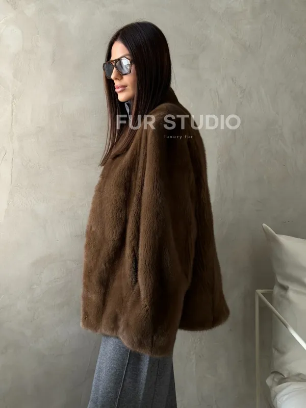 Мех данной шубы аукционная норка , цвет коричневый. Предлагается в размерах от 42 до 50. Длина модели 65-70 см, что выгодно подчеркивает фигуру девушек. Эта модель идеально подойдет для девушек и женщин, предпочитающих роскошные натуральные меха.