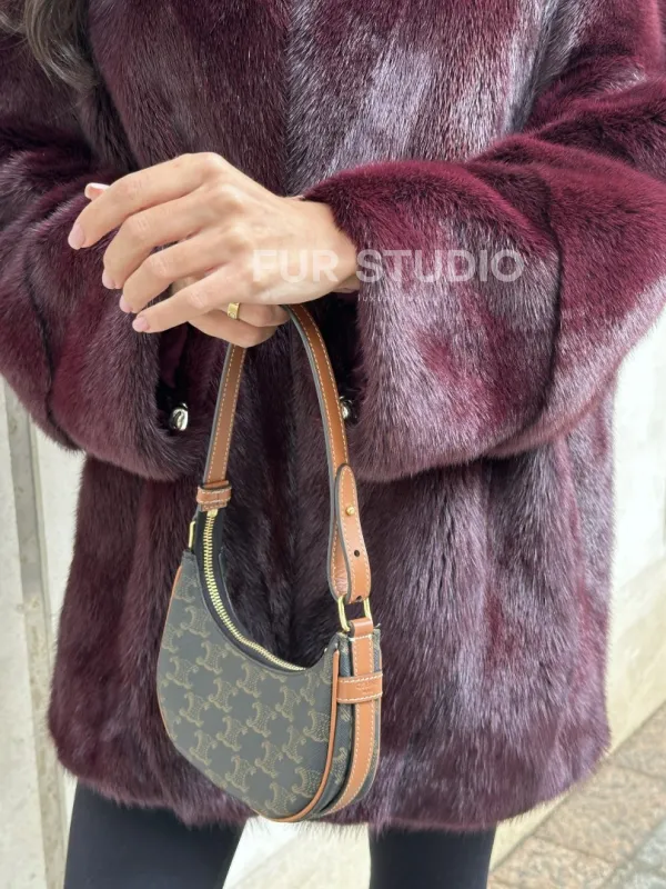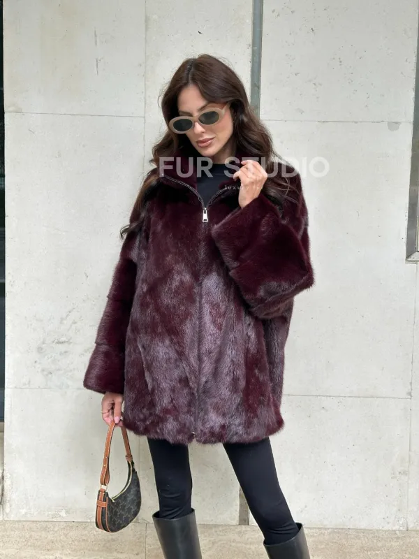 Женская норковая курточка - цвет бордо 100924