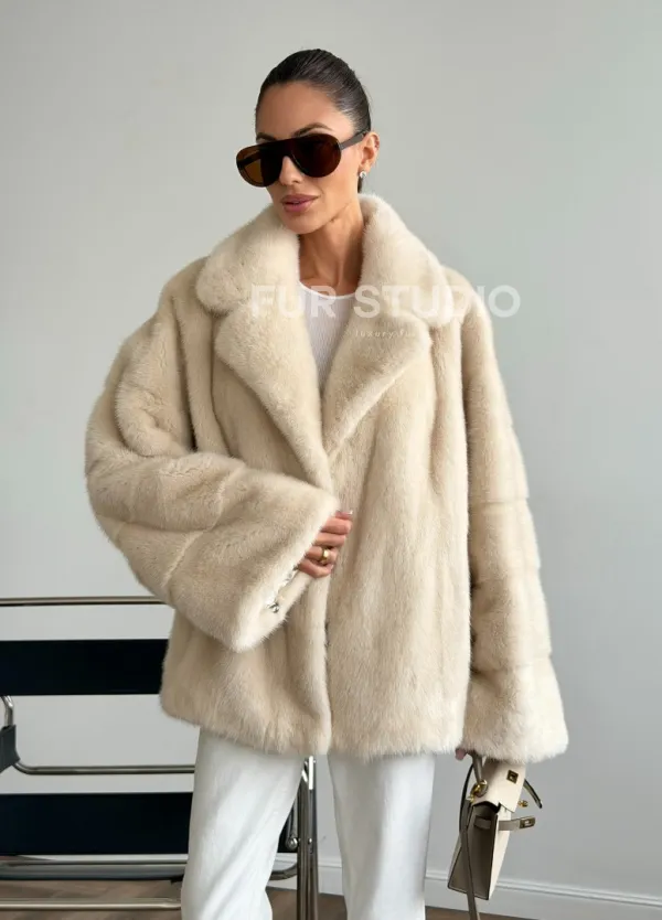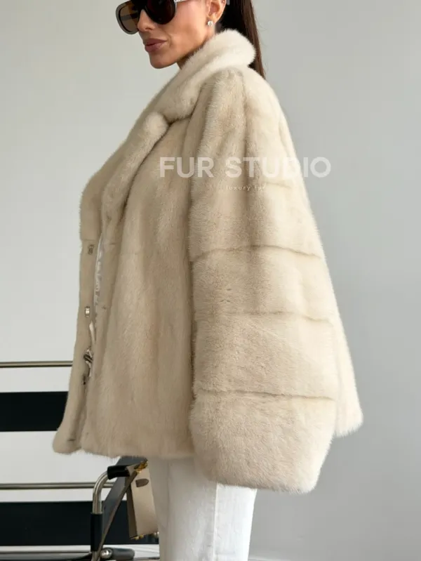 Мех данной шубы аукционная норка, цвет белый. Предлагается в размерах от 42 до 56. Длина модели 65-70 см, что выгодно подчеркивает фигуру девушек. Эта модель идеально подойдет для девушек и женщин, предпочитающих роскошные натуральные меха.
