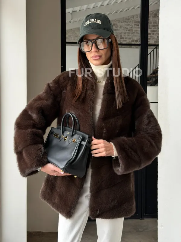 Мех данной шубы аукционная норка , цвет коричневый. Предлагается в размерах от 42 до 52. Длина модели 70-75 см, что выгодно подчеркивает фигуру девушек. Эта модель идеально подойдет для девушек и женщин, предпочитающих роскошные натуральные меха.