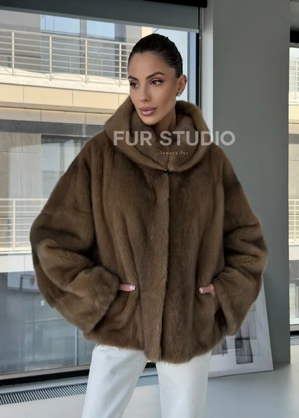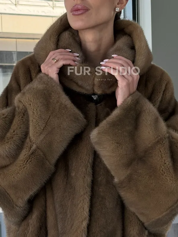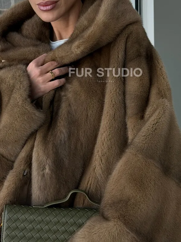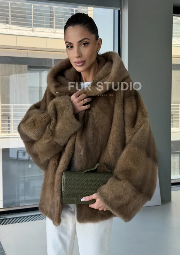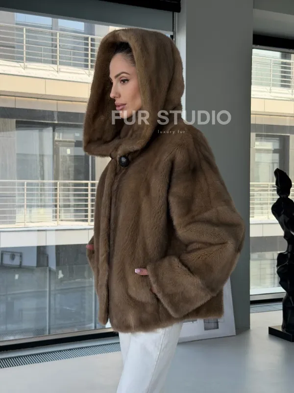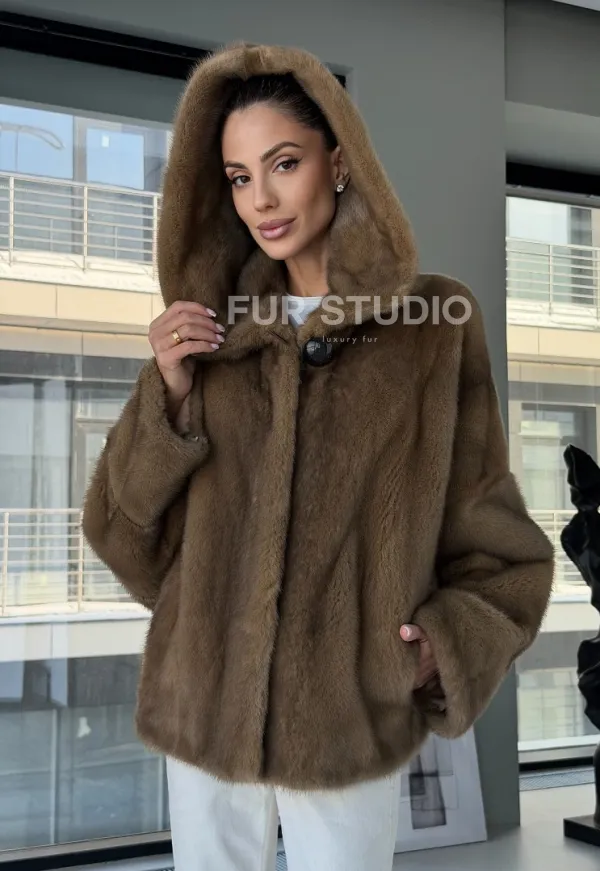 Женский норковый полушубок с капюшоном 102884