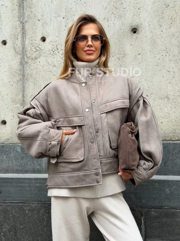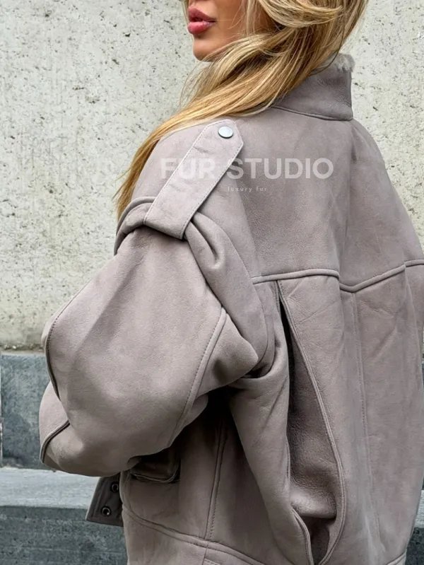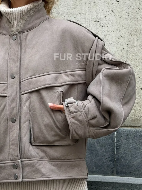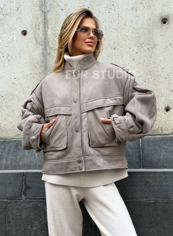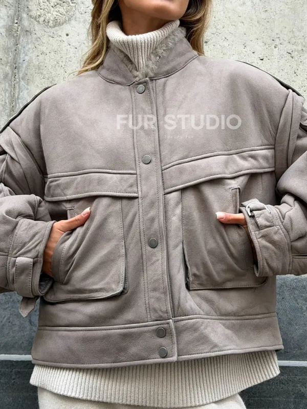 Зимняя дубленка - бомбер 102537